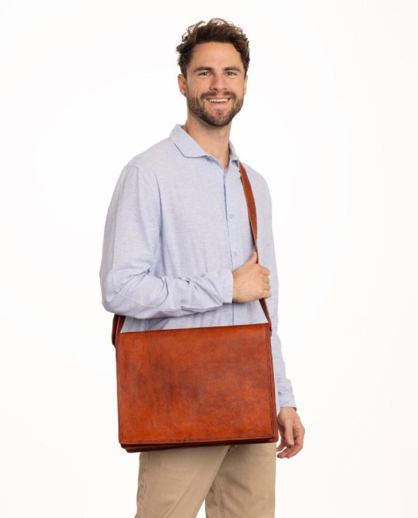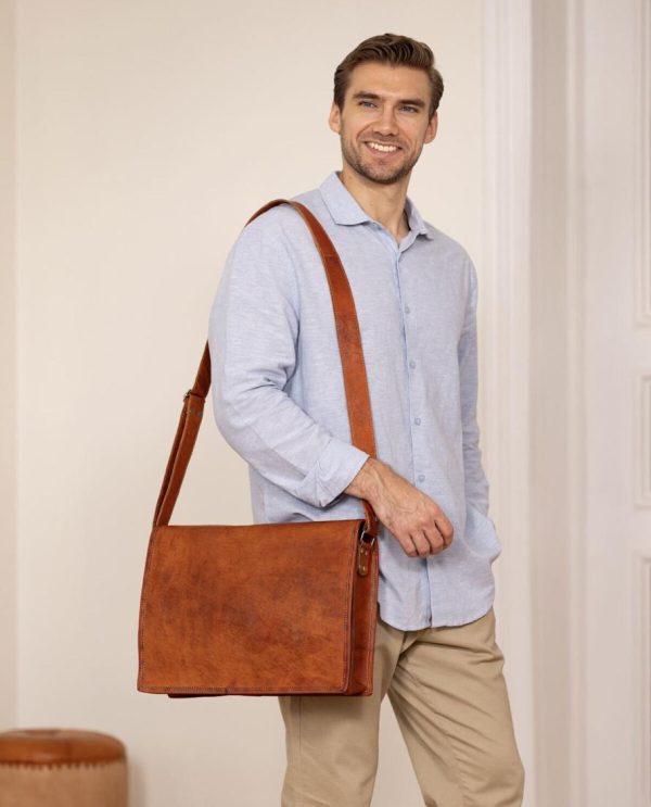 Gusti Leder Max Umhängetasche Vintage Braun | Echt Ziegenleder | 37x28x10 cm | Für Laptop bis 15" Menge