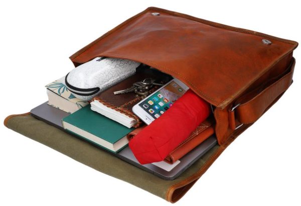 Gusti Leder Max Umhängetasche Vintage Braun | Echt Ziegenleder | 37x28x10 cm | Für Laptop bis 15″
