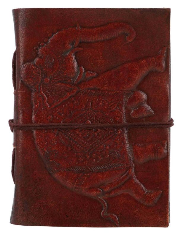 Gusti Leder Notizbuch „Mary-Ann“ DIN B7 – Echtes Rindsleder mit Elefanten-Design, 200 Blankoseiten, Lederband-Verschluss