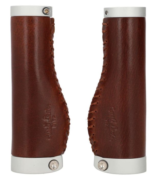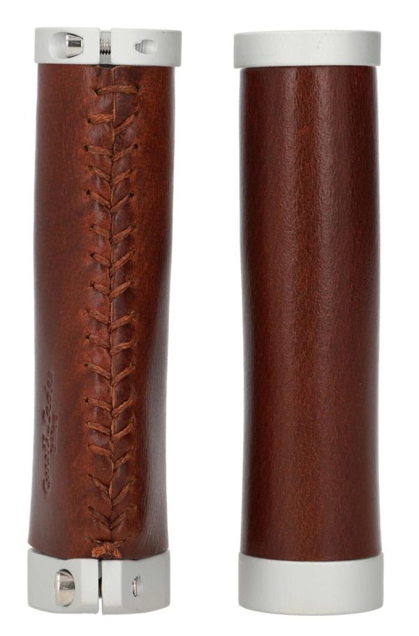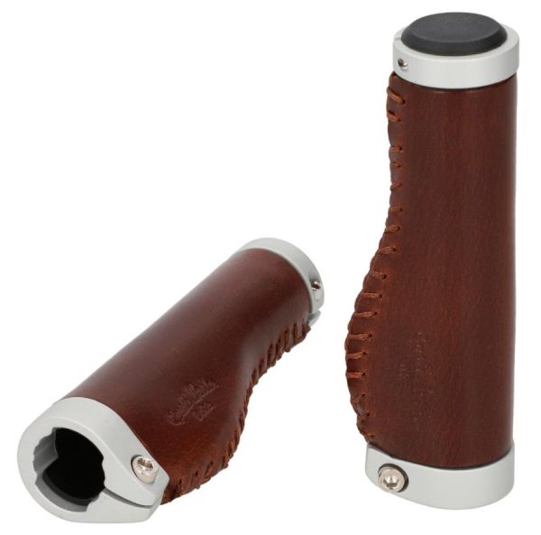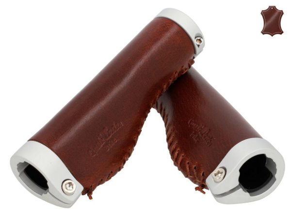 Gusti Leder Phil A. Lenkergriffe Set (2er) – Büffelleder Retro-Design, matt Silber & Braun
