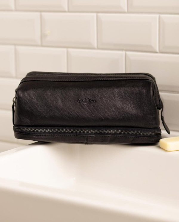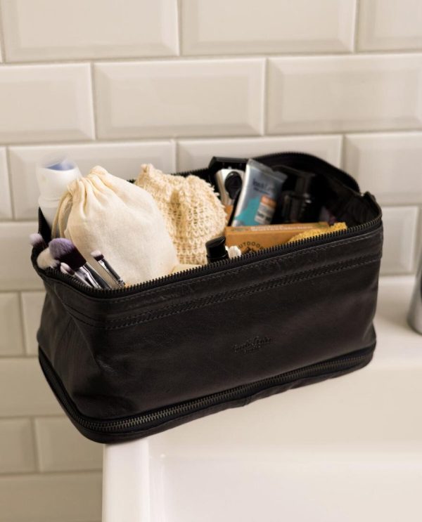 Gusti Leder Quinn Waschtasche aus 100% Büffelleder – Schminktasche im Vintage-Look (30x13x15 cm)