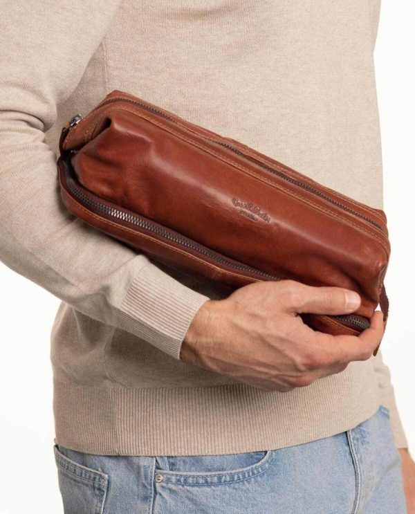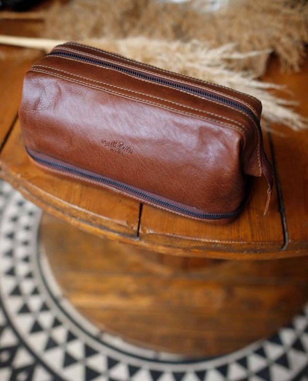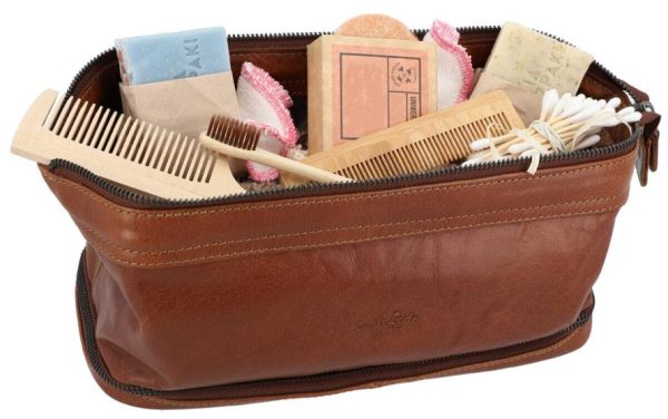 Gusti Leder Quinn Waschtasche aus echtem Büffelleder | 30x35x15 cm | Schminktasche & Kulturtasche Menge
