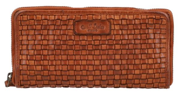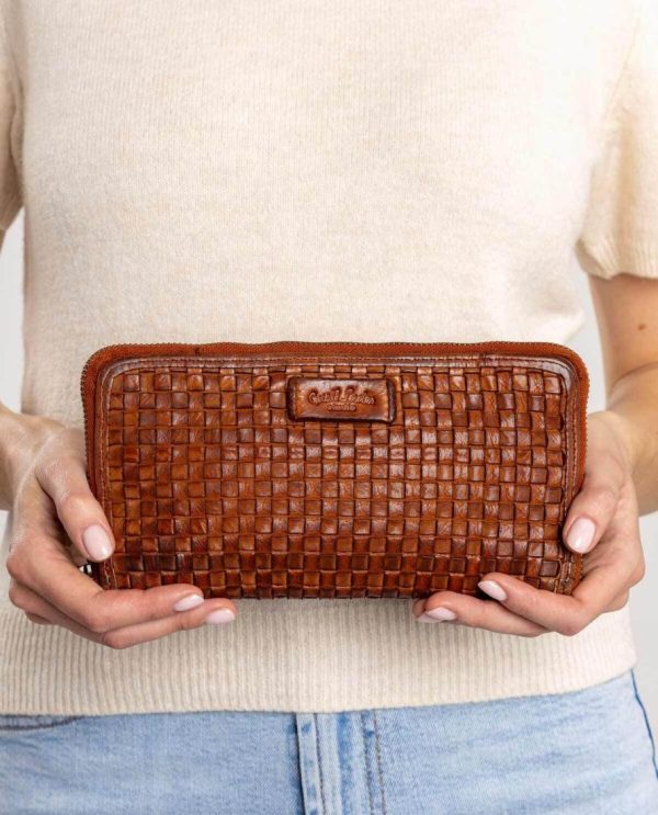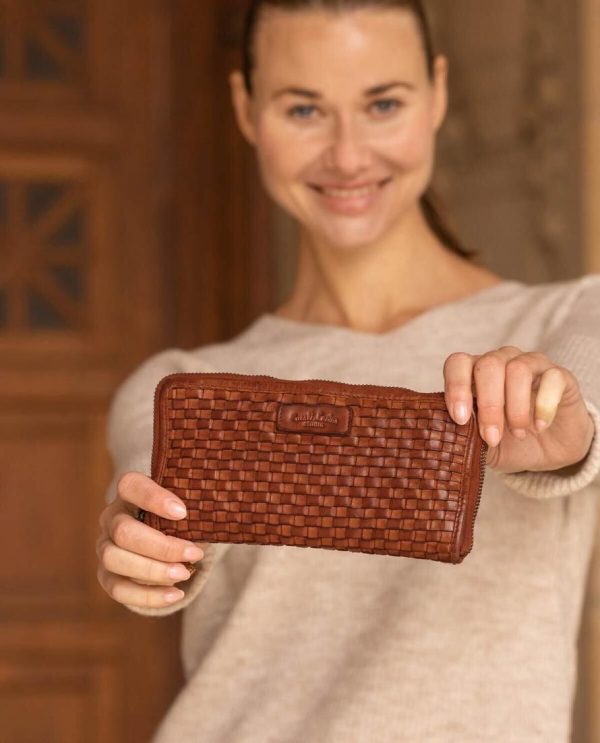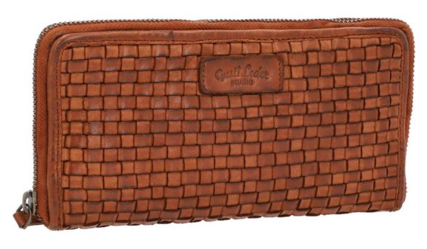 Gusti Leder Reeva Portemonnaie Damen – Echtes Rindsleder, Braun, Flechtmuster, Vintage-Design