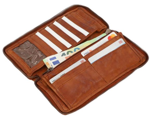 Gusti Leder Reeva Portemonnaie Damen - Echtes Rindsleder, Braun, Flechtmuster, Vintage-Design Menge