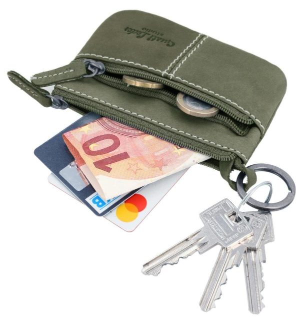 Gusti Leder Rook Schlüsseltasche aus echtem Büffelleder – Blau, Vintage Look mit Schlüsselring