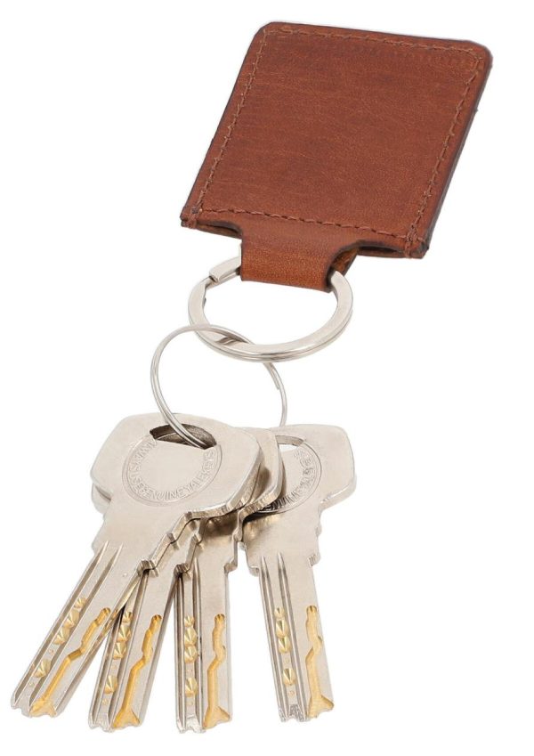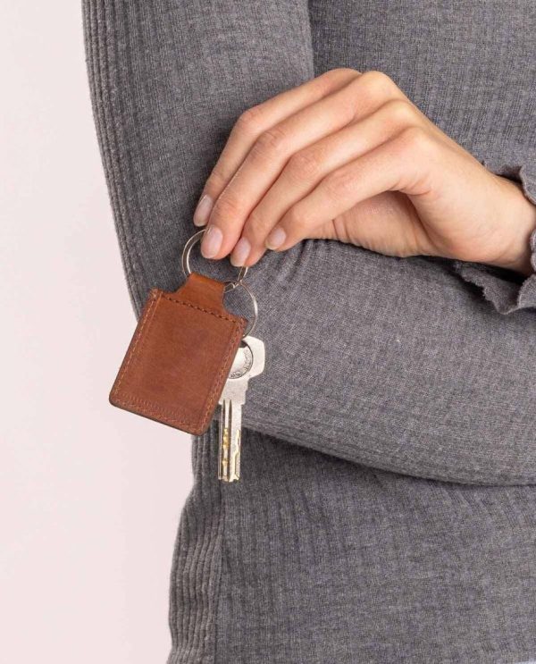 Gusti Leder Schlüsselanhänger Aika – Brauner Rindsleder-Anhänger mit Fotohülle (4×8,5cm)