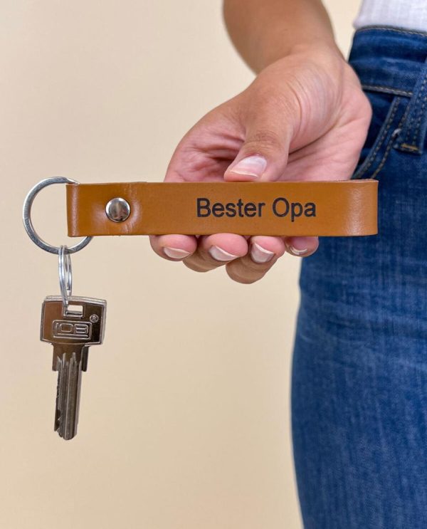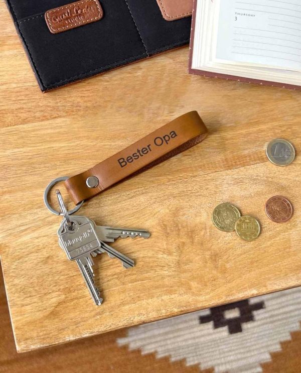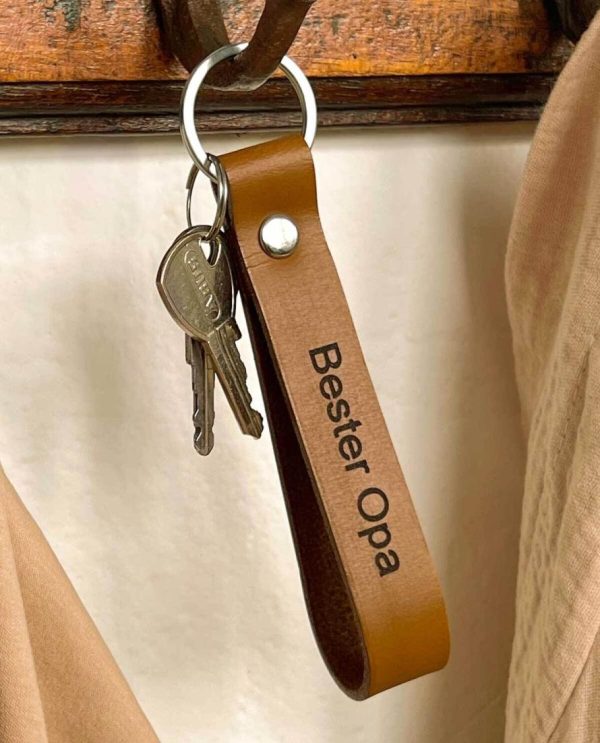 Gusti Leder Schlüsselanhänger „Bester Opa“ – Brauner Büffelleder-Anhänger im Vintage-Look (12x2x0,5 cm)