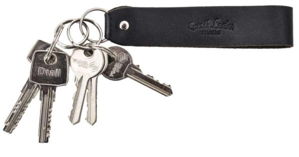 Gusti Leder Schlüsselanhänger Vintage Schwarz – Echt Rindsleder mit 3 Schlüsselringen & Gravurfunktion
