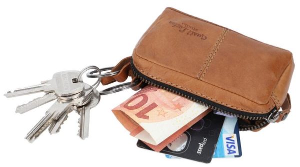 Gusti Leder Schlüsseltasche Butler | Echtes Rindsleder | Kreditkartenformat | Mit Reißverschlussfach