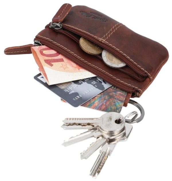 Gusti Leder Schlüsseltasche "Rook" - Vintage Braun, Echt Rindsleder, 2 Fächer, Schlüsselring Menge