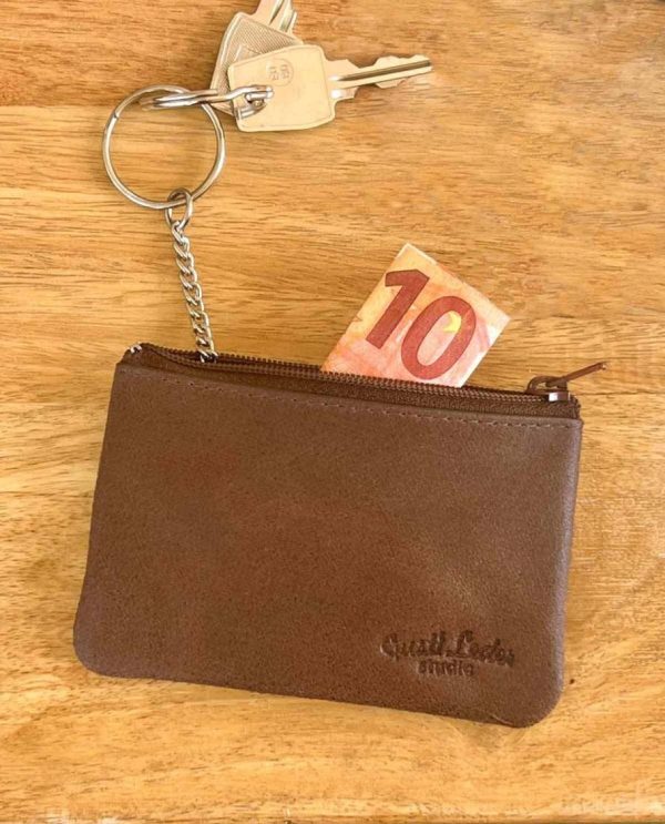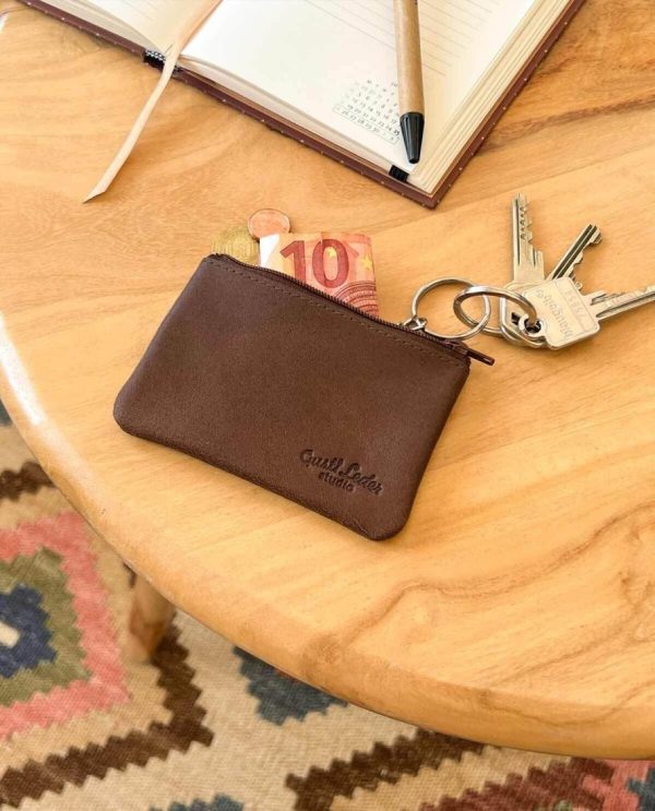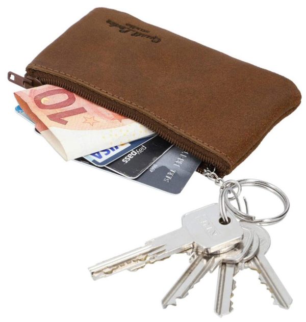Gusti Leder Schlüsseltasche Walden aus echtem Rindsleder – Braun, 11×7 cm, mit Reißverschluss