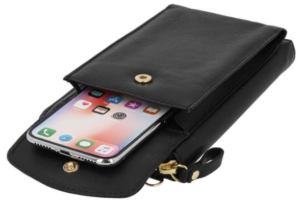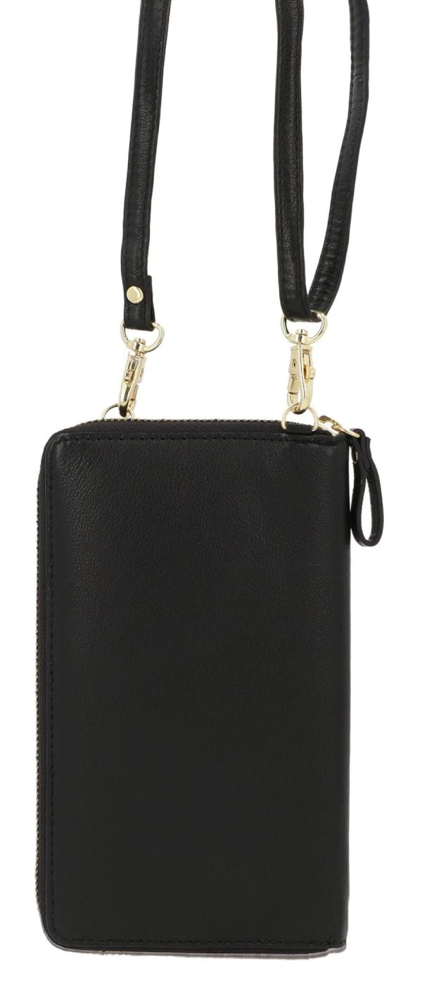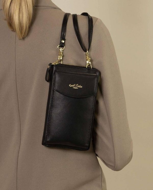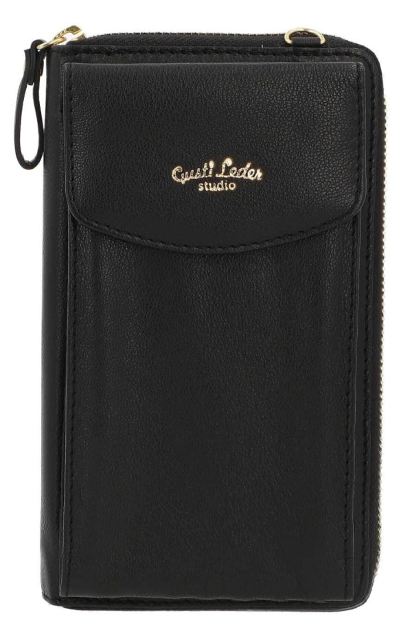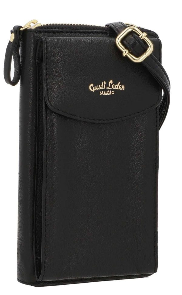 Gusti Leder Silvia Umhängetasche | Echt Ziegenleder Handytasche Schwarz | Mit Münzfach & verstellbarem Gurt Menge