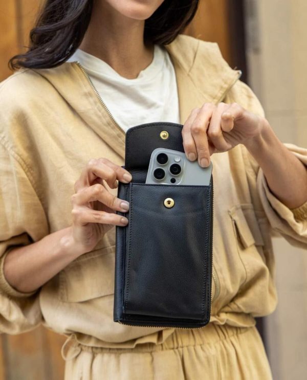 Gusti Leder Silvia Umhängetasche | Echt Ziegenleder Handytasche Schwarz | Mit Münzfach & verstellbarem Gurt