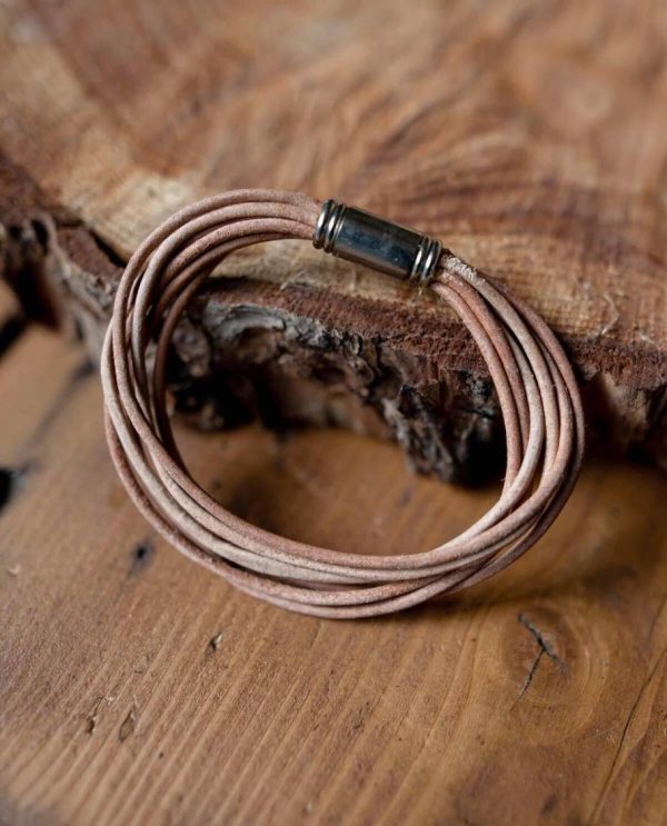 Gusti Leder Stian Armband – Mehrreihiges Surferarmband aus echtem Büffelleder mit Magnetverschluss, beige