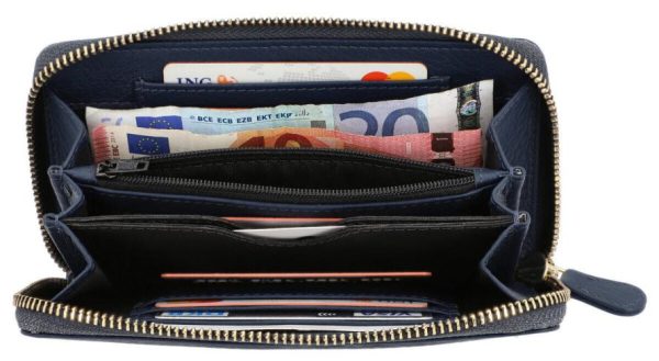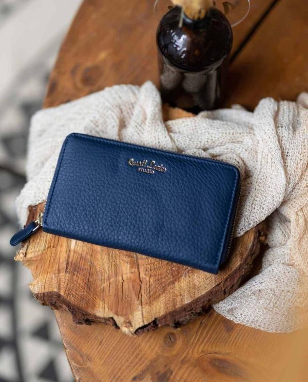 Gusti Leder Thala Damen Portemonnaie aus echtem Rindsleder – Blau – Mit Münzfach & Reißverschluss