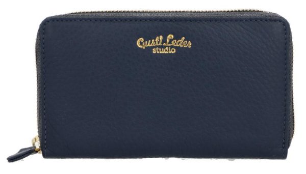 Gusti Leder Thala Damen Portemonnaie aus echtem Rindsleder - Blau - Mit Münzfach & Reißverschluss Menge