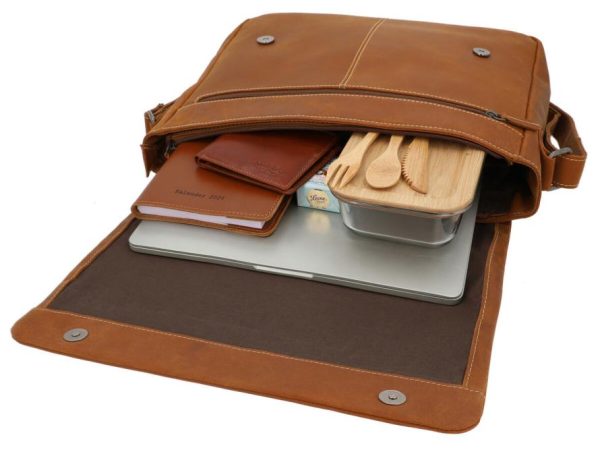 Gusti Leder Umhängetasche Pim – Vintage Braun Büffelleder für Herren (37x30x11 cm)