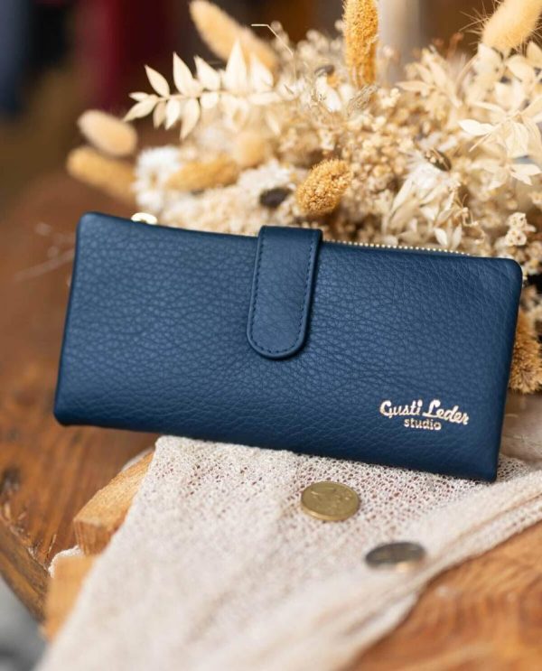 Gusti Leder Vida Geldbörse – Echtes Rindsleder Portemonnaie mit Münzfach, 12 Kartenfächer, Blau