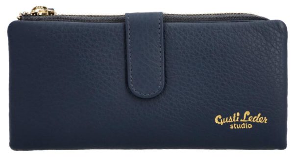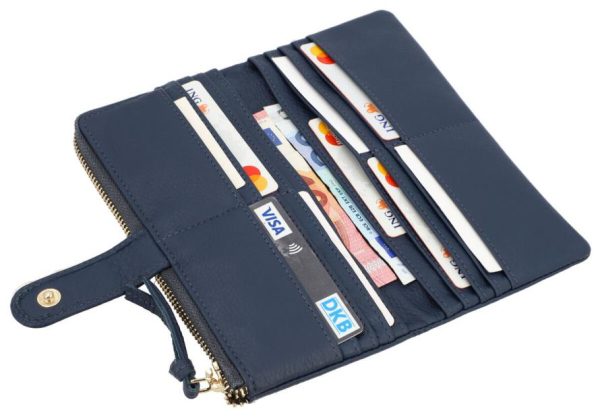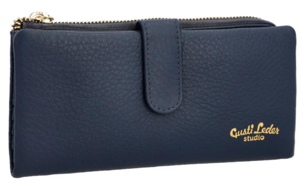 Gusti Leder Vida Geldbörse - Echtes Rindsleder Portemonnaie mit Münzfach, 12 Kartenfächer, Blau Menge