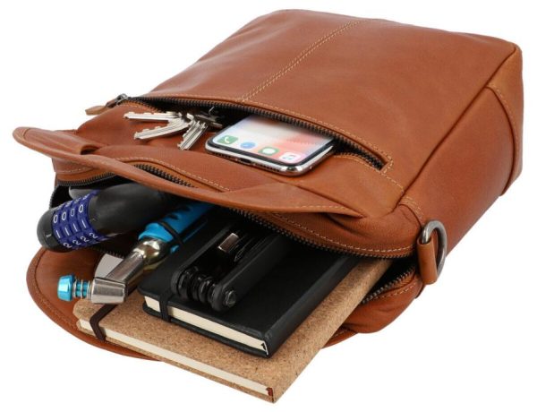 Gusti Leder Vincente T. Lenkertasche aus echtem Rindsleder – Vintage Braun, 22x22x8 cm, magnetischer Verschluss
