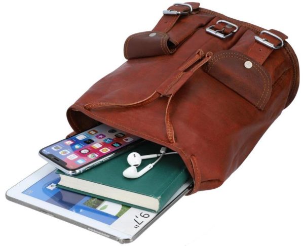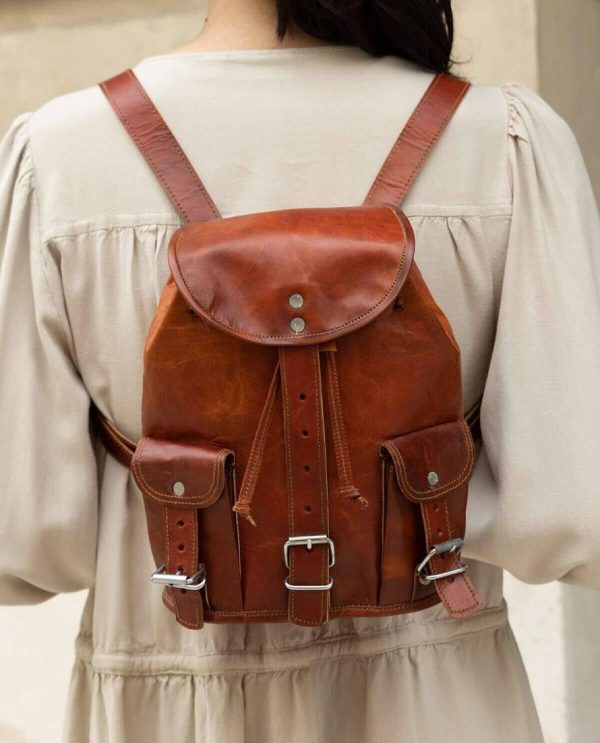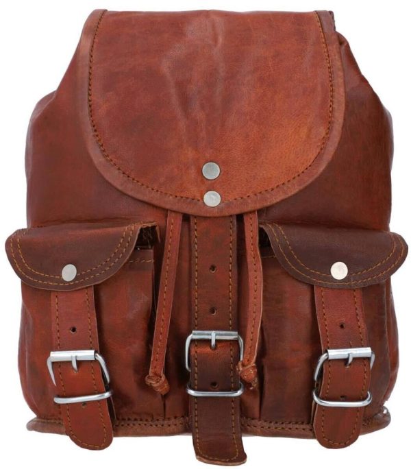 Gusti Leder Vintage Rucksack Lena | Echter Ziegenleder-Rucksack Damen | Brauner Lederrucksack mit 5,7L Fassungsvermögen
