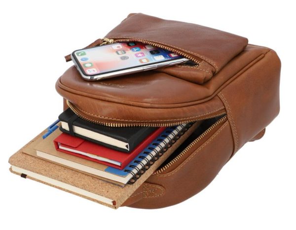 Gusti Leder Wendy Damenrucksack aus echtem Rindsleder, 5 Liter, braun mit Goldapplikationen Menge