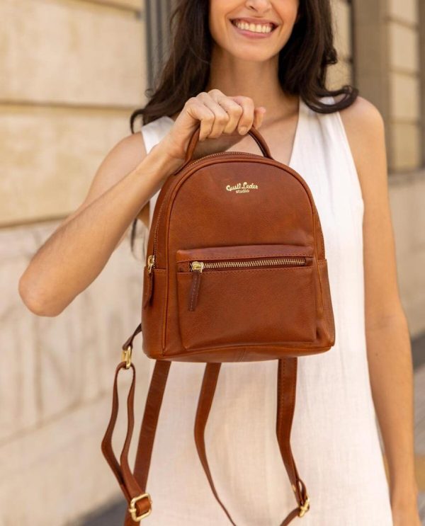 Gusti Leder Wendy Damenrucksack aus echtem Rindsleder, 5 Liter, braun mit Goldapplikationen