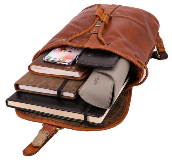 Rucksack Laptoptasche Cityrucksack Lederrucksack Aktentasche Damen Herren Braun Leder 11L