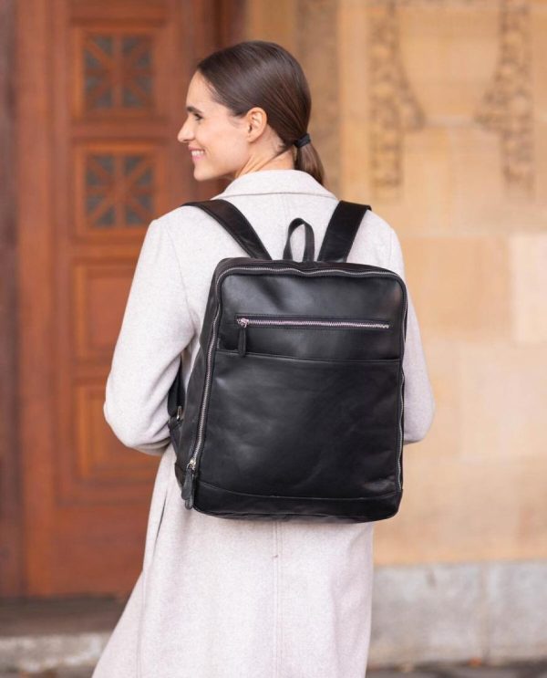 Pflanzlich gegerbt Rucksack Lederrucksack Cityrucksack Outdoorrucksack Daypack Vintage Damen Herren Schwarz Leder 14 L