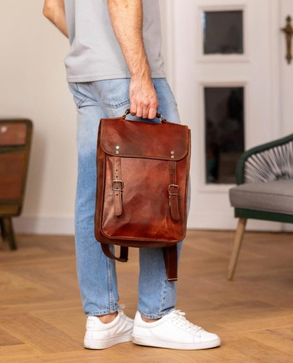 Rucksack Lederrucksack Vintage Damen Herren Braun Leder
