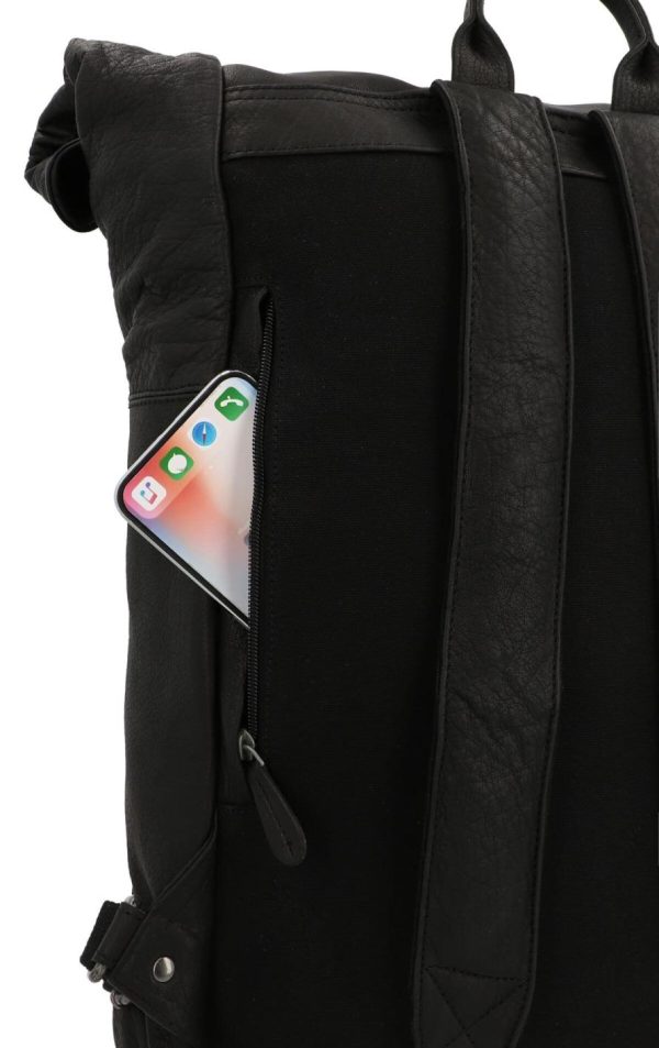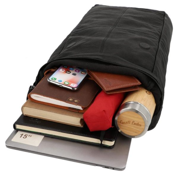Rolltop Kurierrucksack Rucksack Lederrucksack Vintage Cityrucksack Outdoorrucksack Laptoptasche Unirucksack Wanderrucksack Schwarz Leder