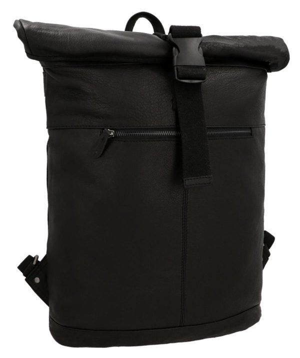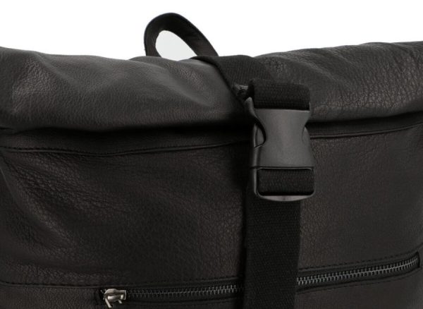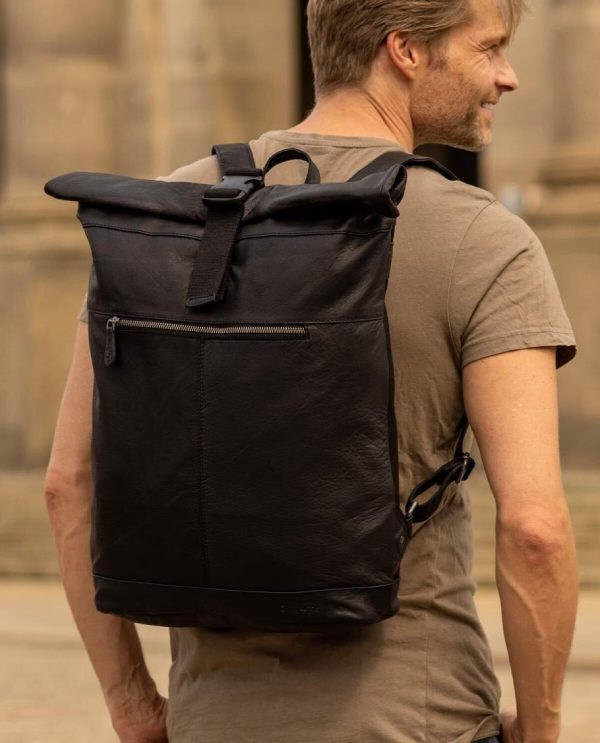Rolltop Kurierrucksack Rucksack Lederrucksack Vintage Cityrucksack Outdoorrucksack Laptoptasche Unirucksack Wanderrucksack Schwarz Leder 20L