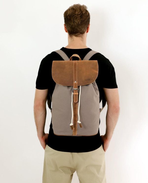 Rucksack groß Cityrucksack Collegerucksack Unirucksack Daypack Schultasche Laptoptasche Outdoorrucksack Laptoprucksack Lederrucksack Grau Canvas & Leder