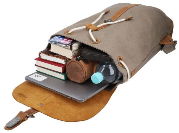 - Rucksack bestehend aus hochwertigem Canvas und chemisch gegerbtem Büffelleder