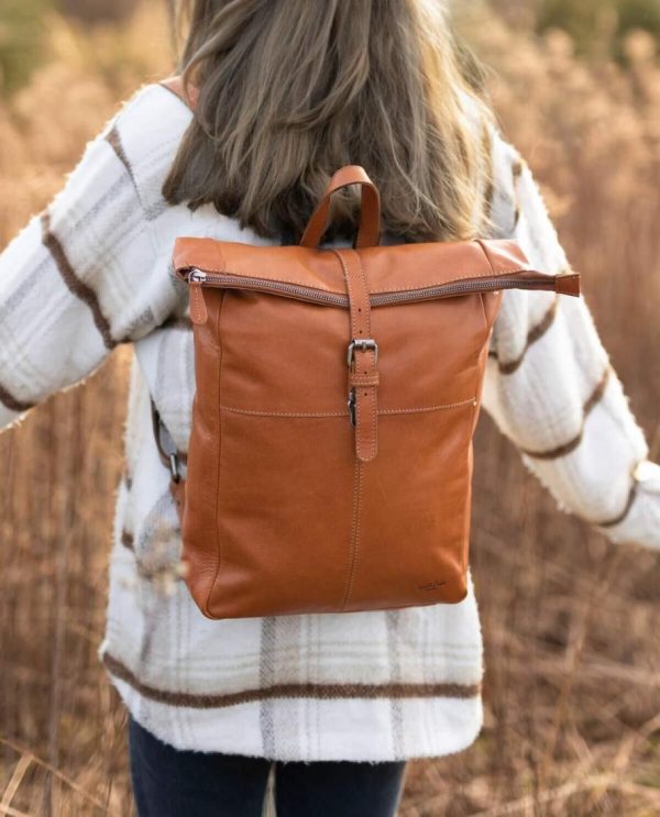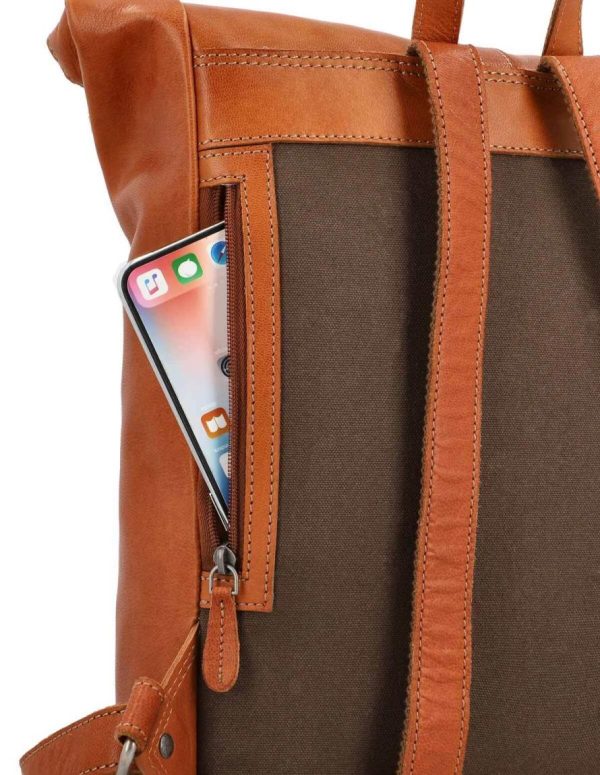Rucksack Laptoptasche Lederrucksack Damen Herren Braun Leder