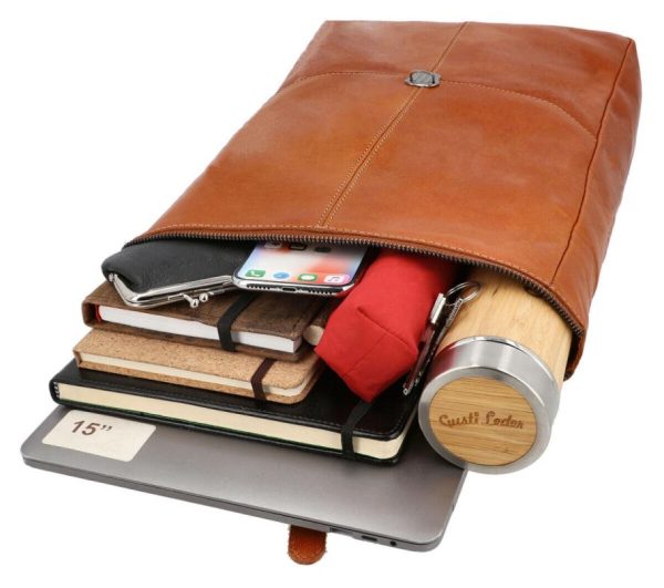 Abmessungen (B x H x T):25,5 x 35,5 (42 cm geöffnet) x9 cmHergestellt in :IndienProduzent:50-150 MitarbeiterLeder:ZiegenlederLederart:SemianilinlederGerbung:ChromgerbungFarbe:braunTrageriemen:47 – 88 cm