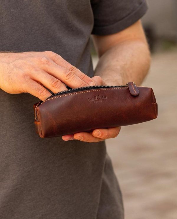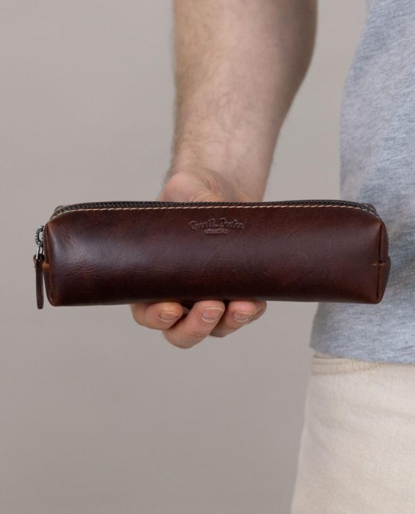 Pflanzlich gegerbt Stiftemappe Federtasche Federmappe Schlampermäppchen Stiftetui Braun Leder