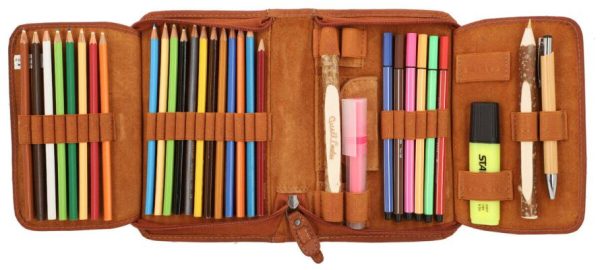 Federtasche Leder Federmäppchen Federmappe Stifteetui Braun