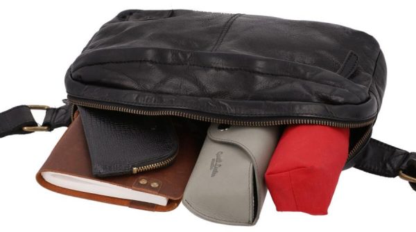 Abmessungen (B x H x T):30 x 19 x 5,5 cmHergestellt in :IndienProduzent:50-150 MitarbeiterLeder:RindslederLederart:halbvegetatives WachsGerbung:SemichromeEigene Gerberei:jaFarbe:schwarzGewicht:0,50 kgTrageriemen:64 – 118 cm