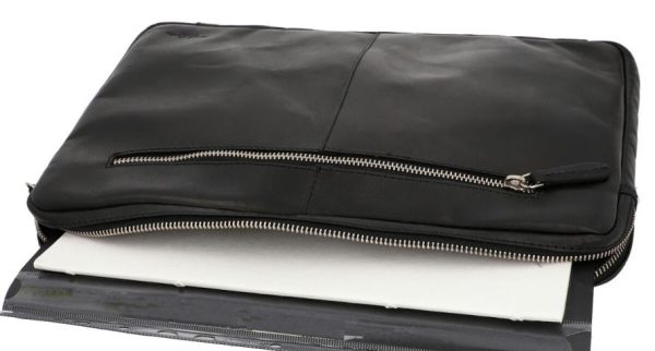 Pflanzlich gegerbt Laptoptasche Laptophülle Ledertasche Schwarz Leder