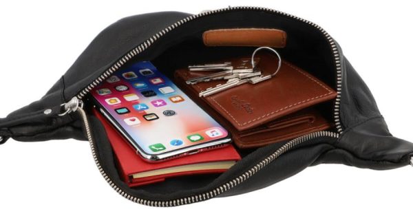 Gürteltasche Bauchtasche Umhängetasche Handtasche Ledertasche Herren Damen Schwarz Leder