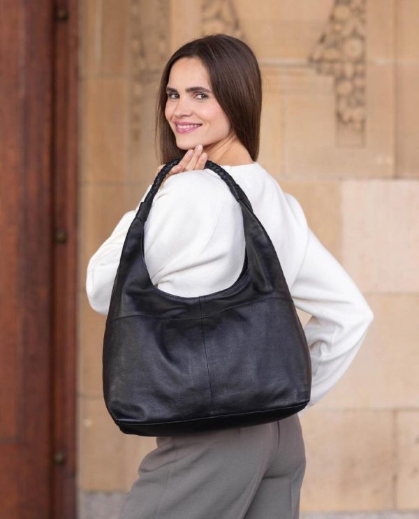 Shopper Handtasche Umhängetasche Ledertasche Schwarz Leder