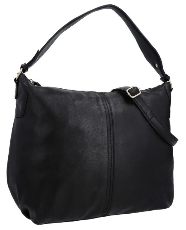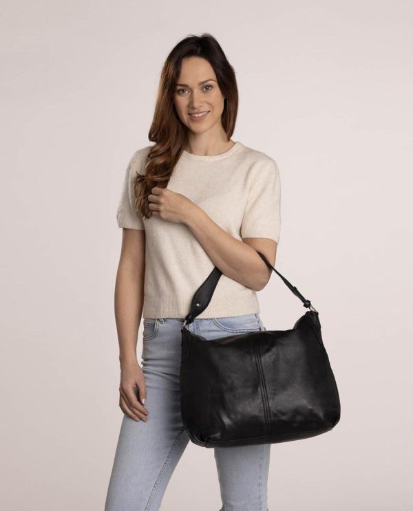 Shopper Handtasche Umhängetasche Riementasche Schultertasche Unitasche Bag Shopping Tasche Ledertasche Damen Schwarz Leder