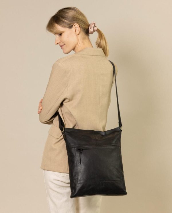 Pflanzlich gegerbt Handtasche Ledertasche Umhängetasche Laptoptasche Damen schwarz Leder