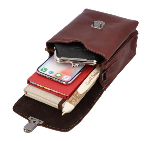 Hergestellt in :IndienProduzent:50-150 MitarbeiterLeder:RindslederLederart:Semianilinleder mit Wachs überzogenGerbung:ChromgerbungFarbe:braunAbmessungen (BxHxT):12 x 16 x 7 cmInnenfächer:4Marke:Gusti Leder studioTrageriemen:80 bis 150 cmVerschluss:Schnappschloss
