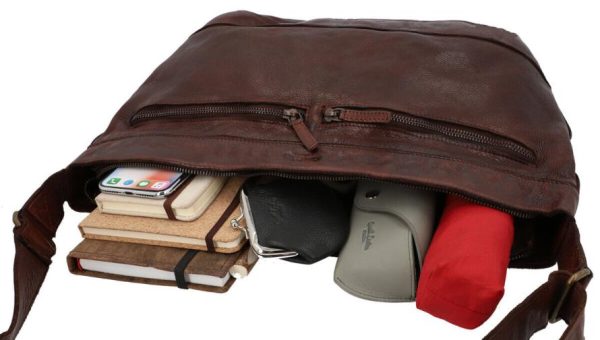 Abmessungen (B x H x T):32 x 22 x 17,5 cmHergestellt in :IndienProduzent:50-150 MitarbeiterLeder:RindslederLederart:halbvegetatives WachsGerbung:SemichromeEigene Gerberei:jaFarbe:braunTrageriemen:69 – 127 cm