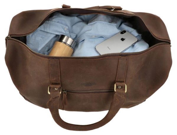 Abmessungen (B x H x T):50 x 30 x 26 cmHergestellt in :IndienProduzent:150 + MitarbeiterLeder:BüffellederLederart:Vollnarbiges, pflanzlich gegerbtes Anilinleder mit Öl und WachsGerbung:ChromfreiEigene Gerberei:jaZertifikat:SedexFarbe:braunGewicht:1,65 kgTrageriemen:83 – 130 cm, Abnehmbar, Längenverstellbar
