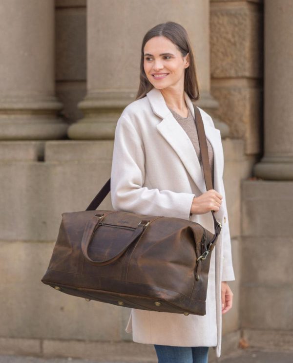 Pflanzlich gegerbt Reisetasche Handtasche Umhängetasche Ledertasche Damen Herren Tasche Designed in Berlin Braun Leder 36L