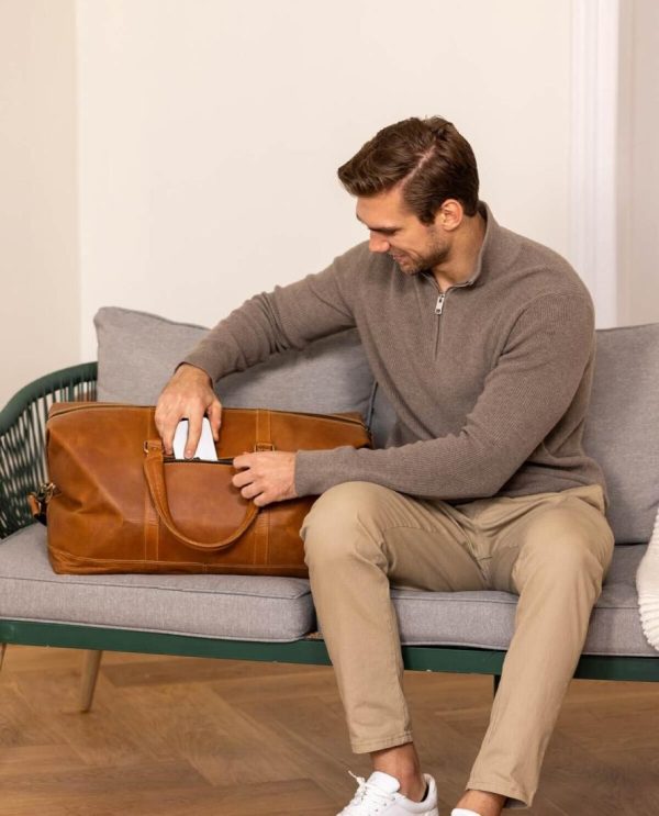 Reisetasche Handtasche Umhängetasche Ledertasche Berliner Großstadt Flair Damen Herren Tasche Braun Leder 36L