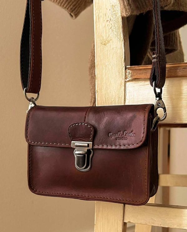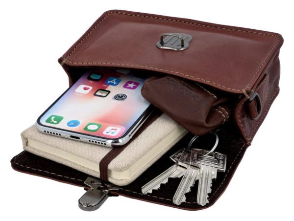 Abmessungen (B x H x T):14,4 x 9,5 x 4,5 cmHergestellt in :IndienProduzent:50-150 MitarbeiterLeder:RindslederLederart:Semianilinleder mit Wachs überzogenGerbung:ChromgerbungFarbe:braunInnenfächer:2Innenfächer:2Marke:Gusti Leder studioReißverschlussfächer:1Trageriemen:75 bis 143 cmVerschluss:Schnalle(n)
